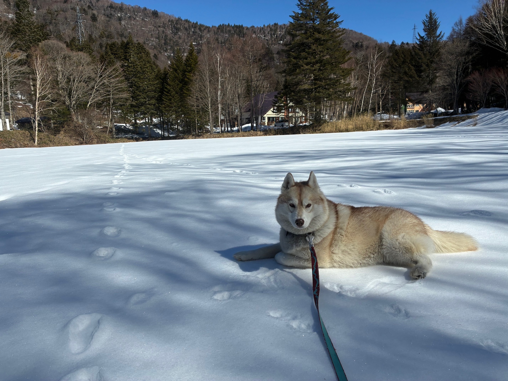 今年は2月にあまり雪が降らなかったために、温かい日も続き融雪が心配でしたが、本日看板犬むくの散歩にスキー場へ行ったところ